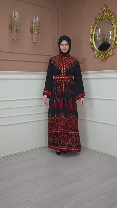 ثوب المناجل الفلسطيني المطرز وجهين بإغلاق سحاب على طول الثوب