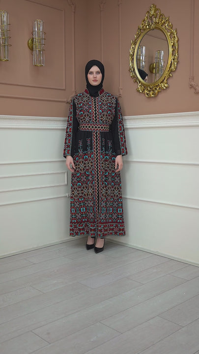 ثوب فلاحي بتطريز فلسطيني وجهين مع اغلاق بسحاب