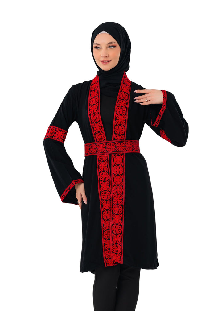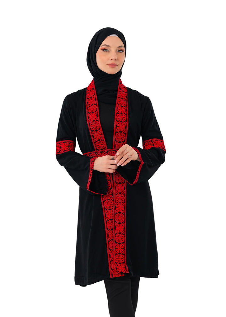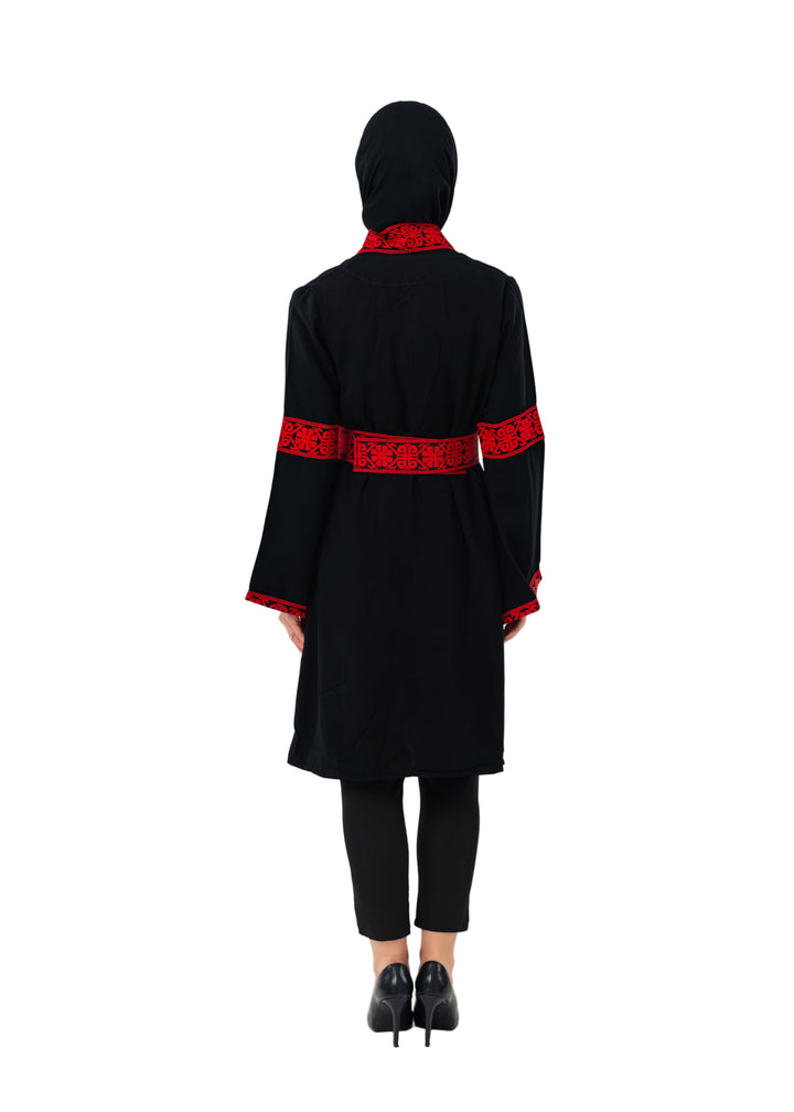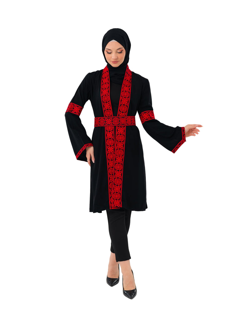 Palestine Red Embroidered Black Palestine Short Coat Abaya C100053