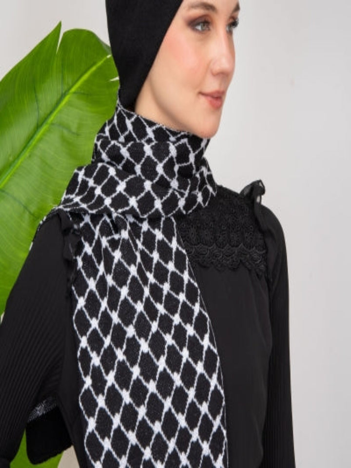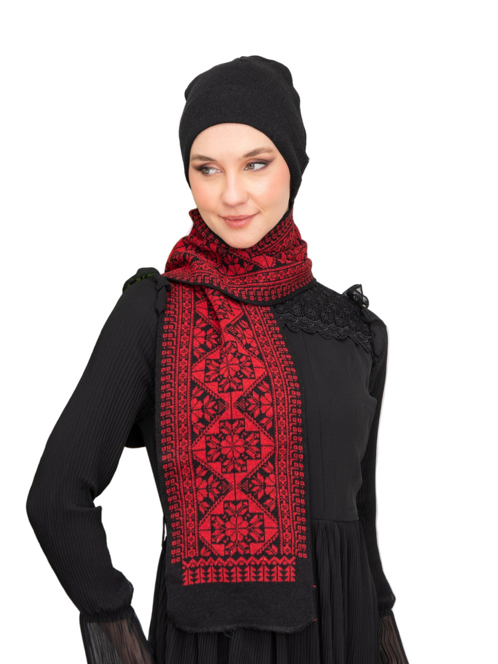 طقم طاقية وشال تريكو شتوي برسمة التطريز التراثي