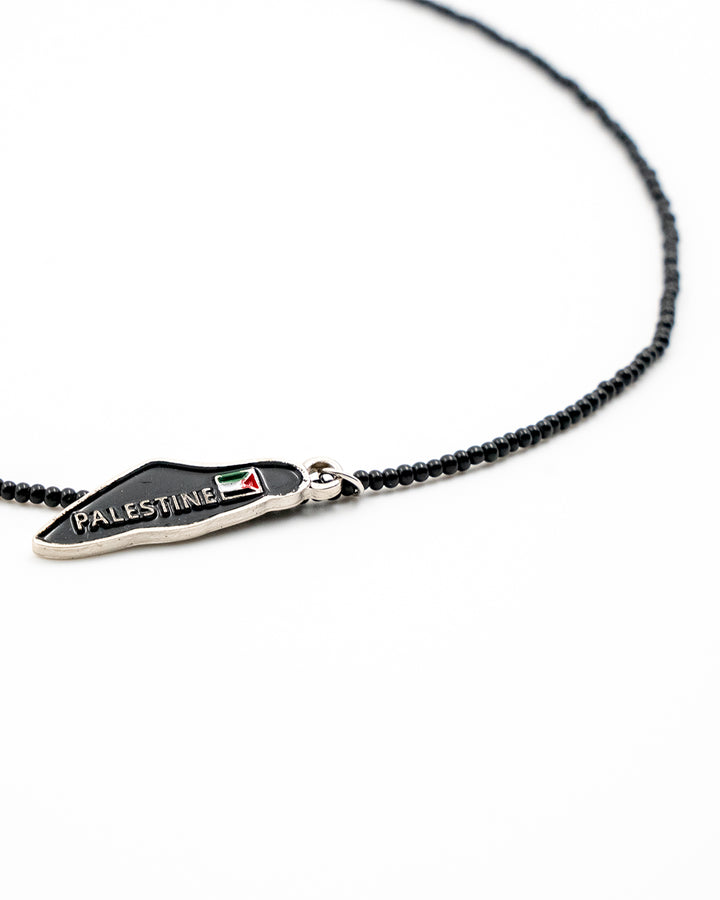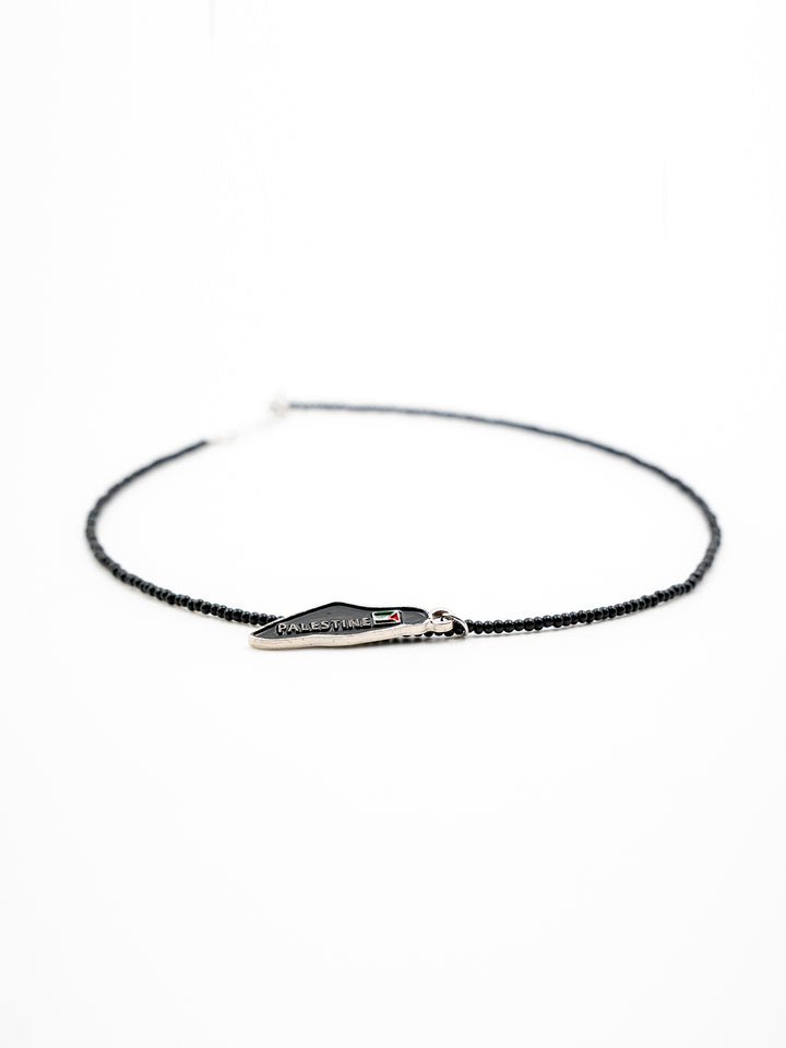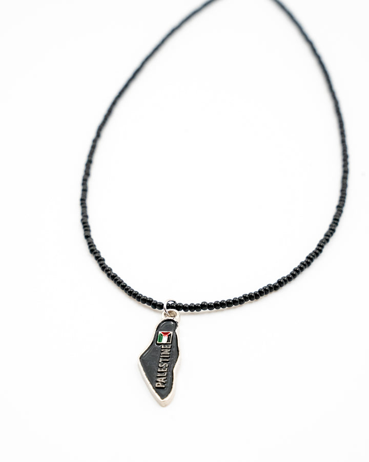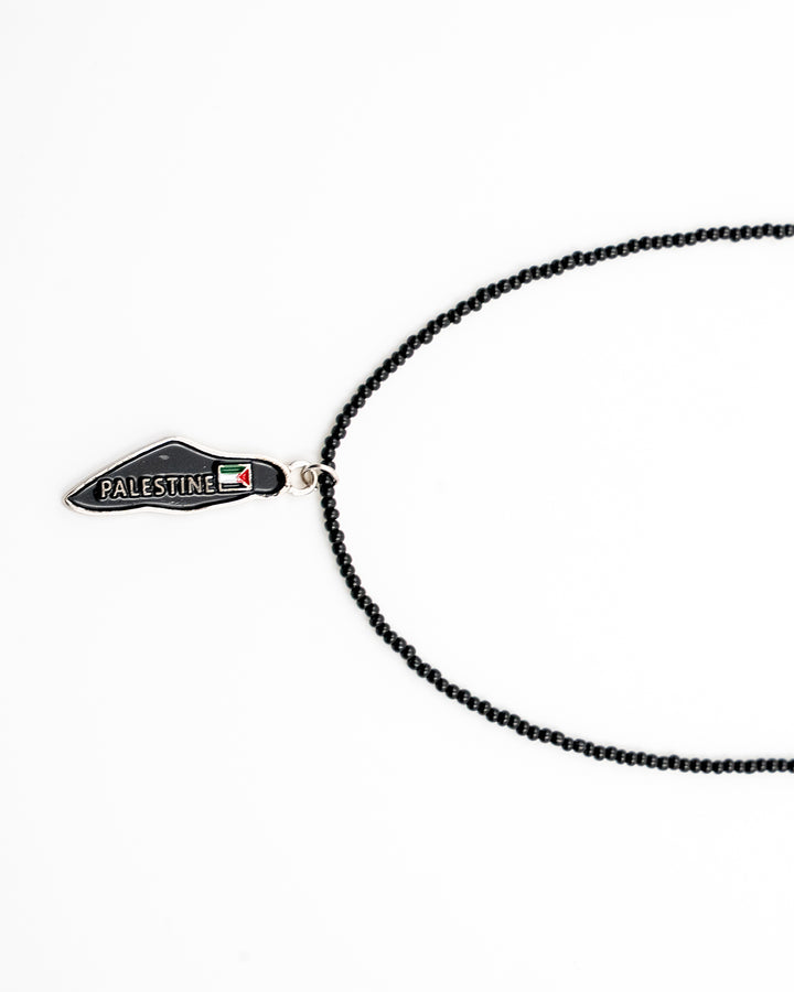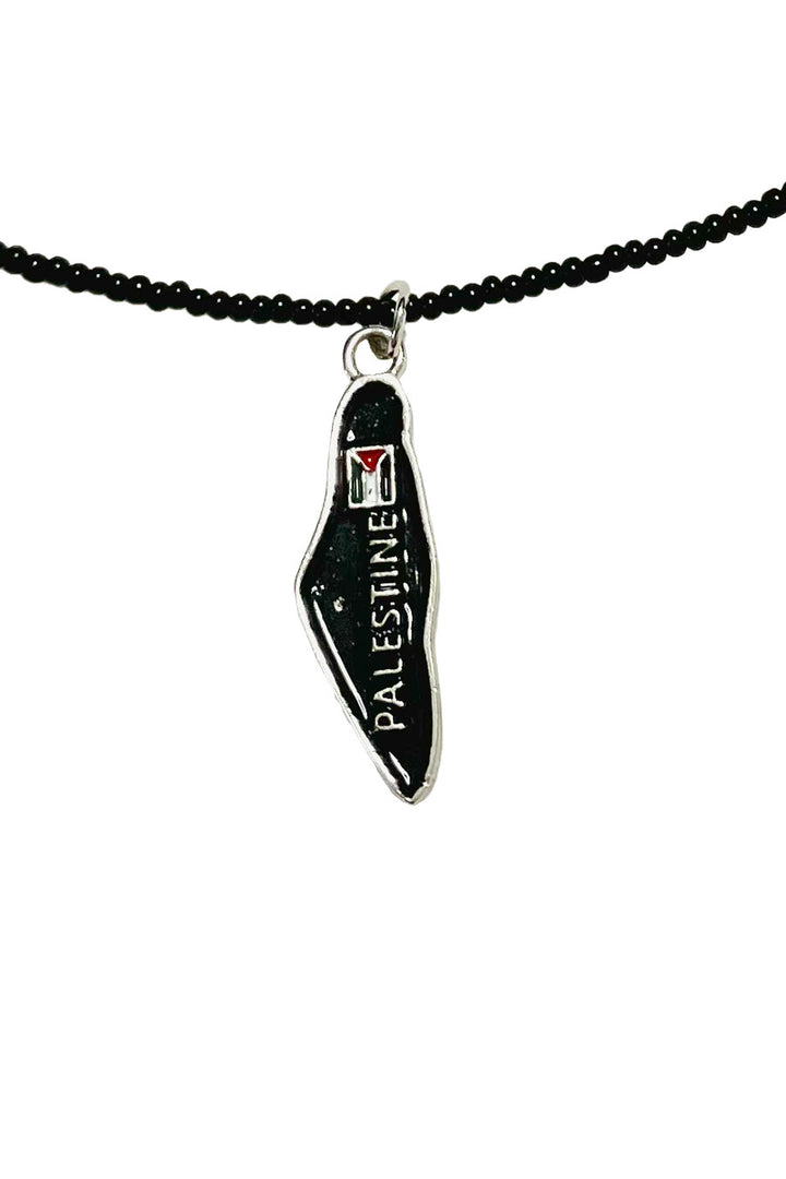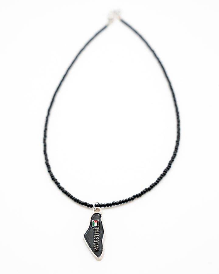 Black Beaded Handmade Palestine Map Unisex Palestine Necklace 40 Cm J300009