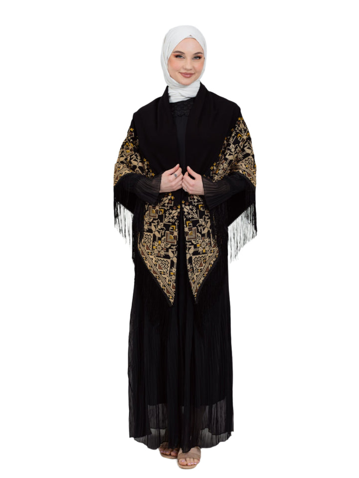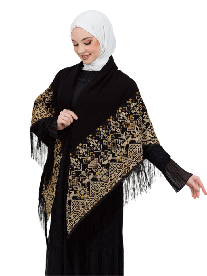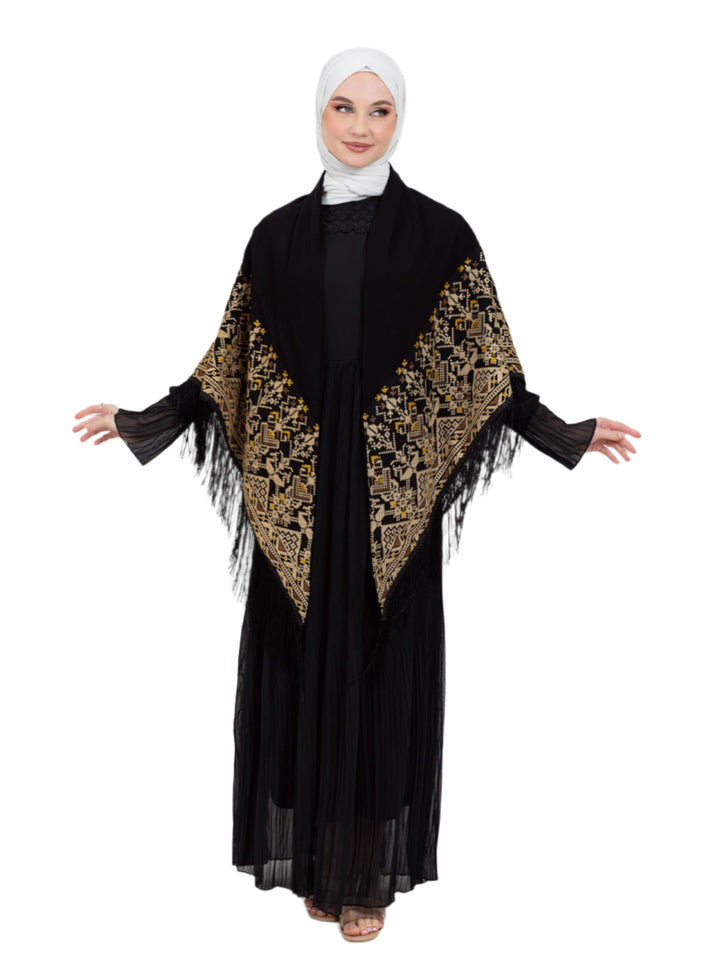Black Color Traditional Yellow And Orange Embroidered Tassel 180180 S300014