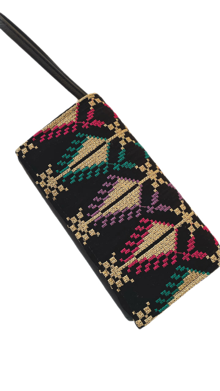 Black Colored Gold And Colored Embroidered Snap Closure Womens Hand Wallet 1911 Cm A100025