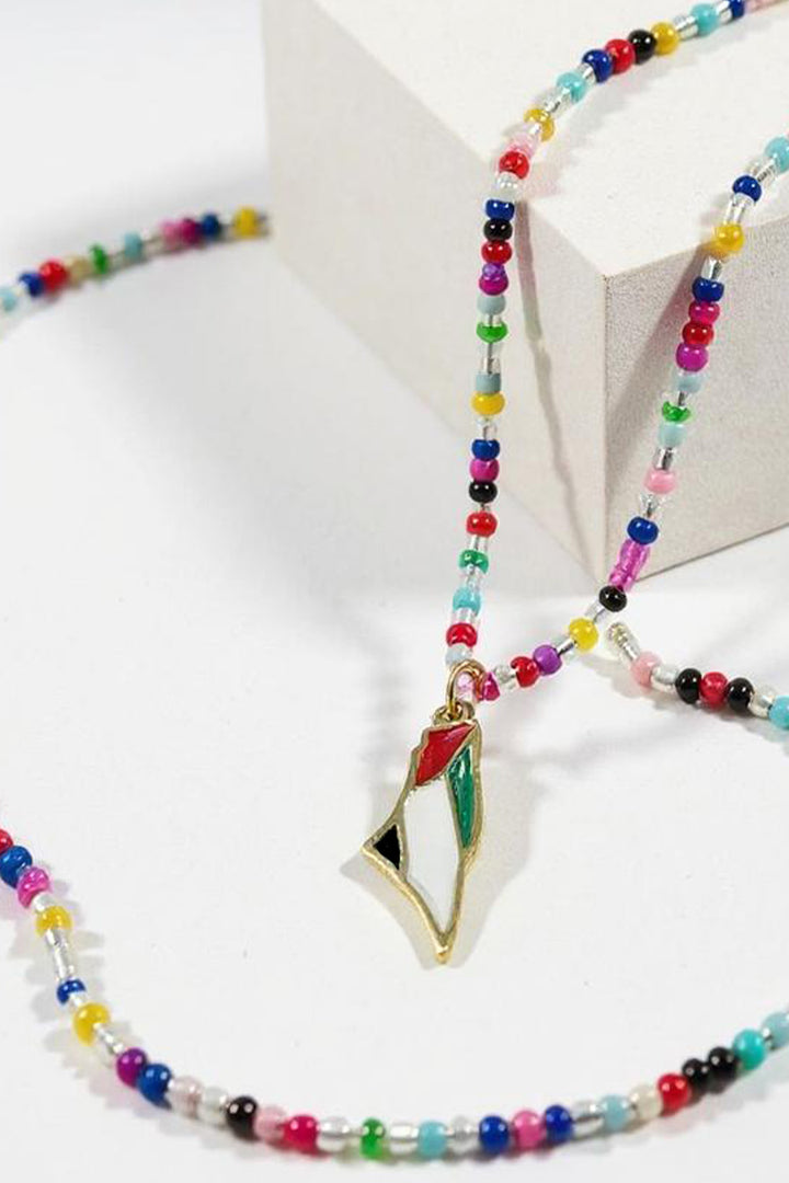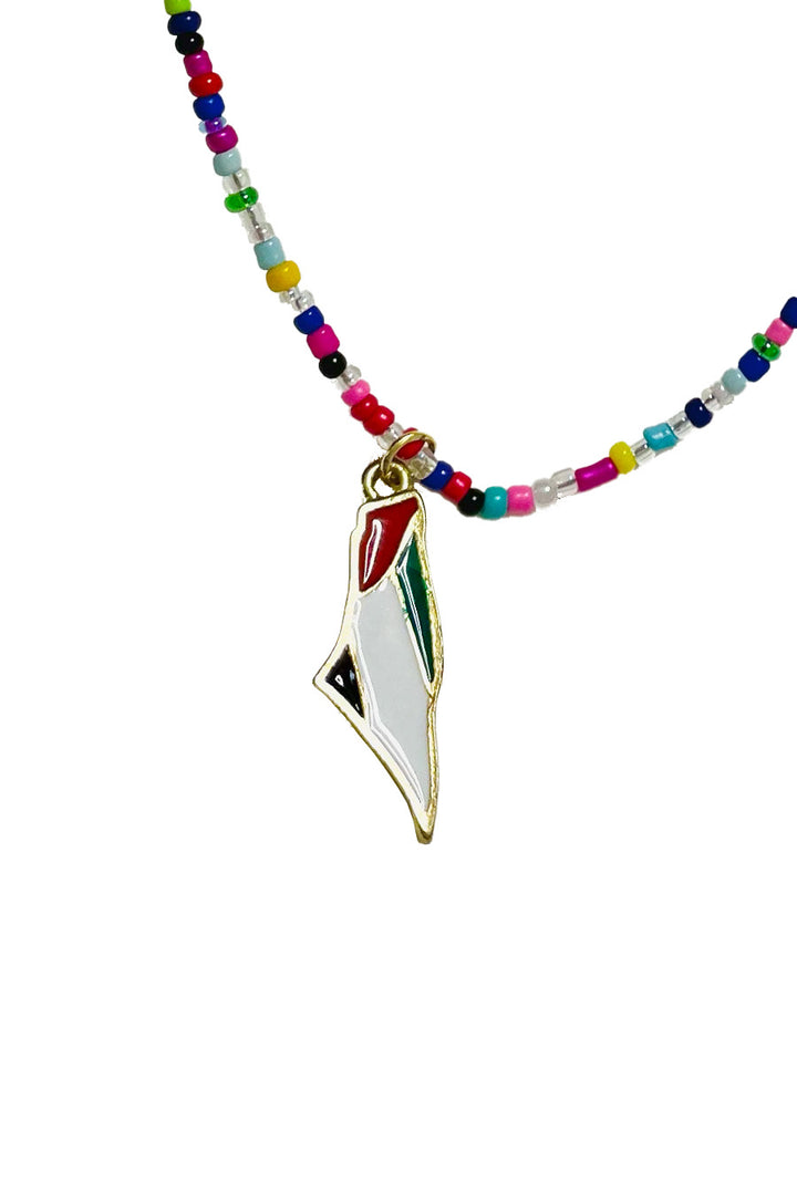 Colorful Beaded Handmade Palestine Map Unisex Palestine Necklace 40 Cm J300012