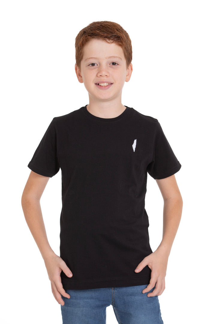 A basic yet contemporary T-shirt that carries a cherished national symbol in a simple and elegant style. This embroidered kids T-shirt is designed to combine absolute comfort with pride in Palestinian identity, making it a perfect piece for daily wear at school or play.