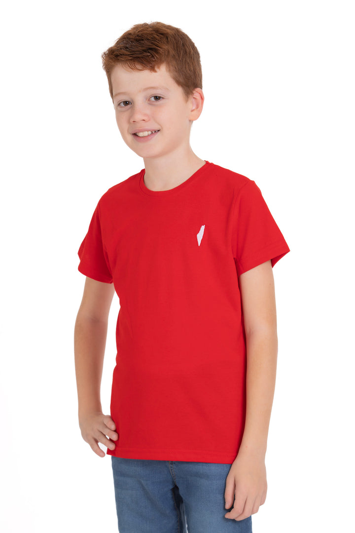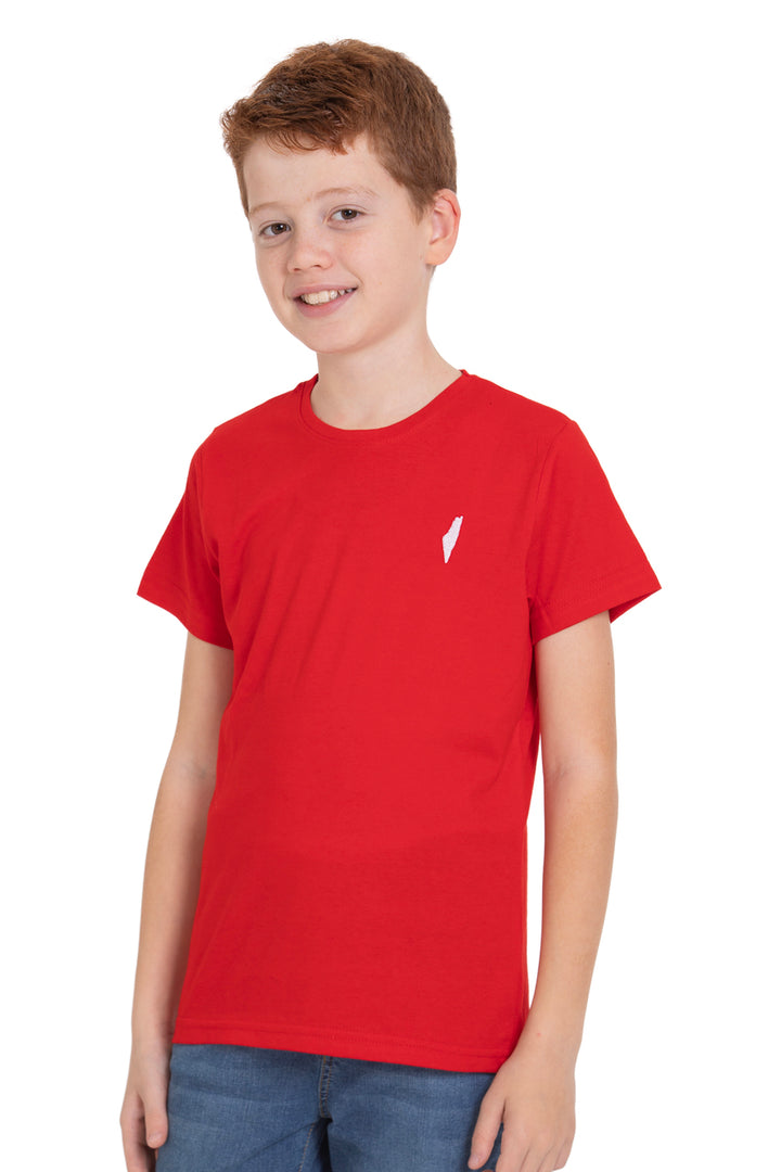 Cotton Kids T-Shirt Embroidered with Palestine Map