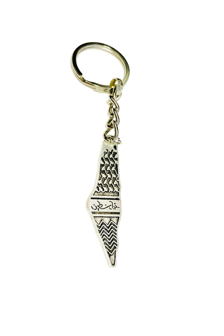 Palestine Map With Keffiyeh Embroidery Silver Color Keychain Unisex A300051