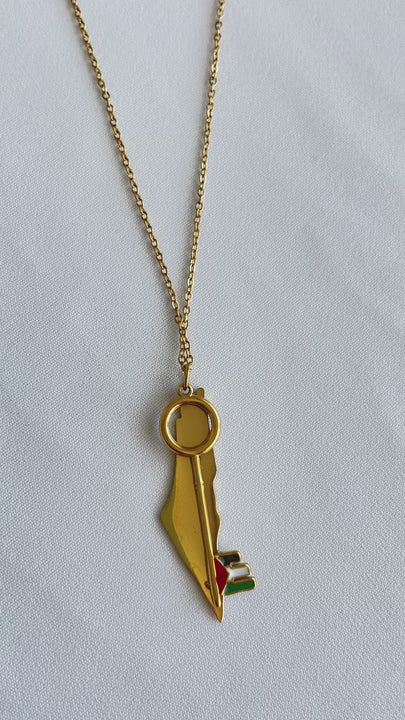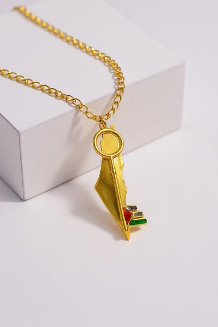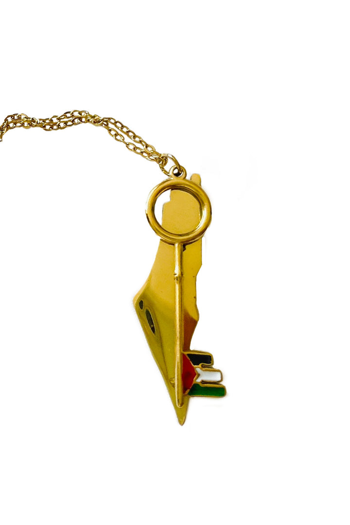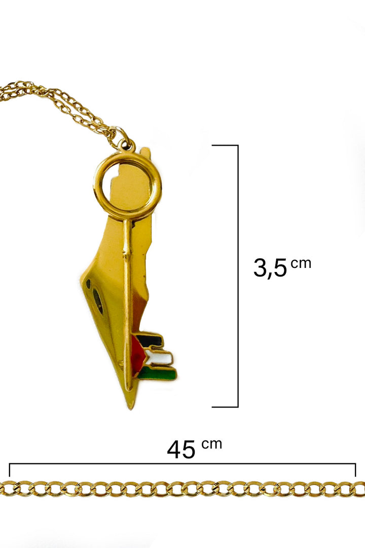 Palestine Map With Key Stainless Steel Plated Chain Unisex Necklace 44 Cm J300016
