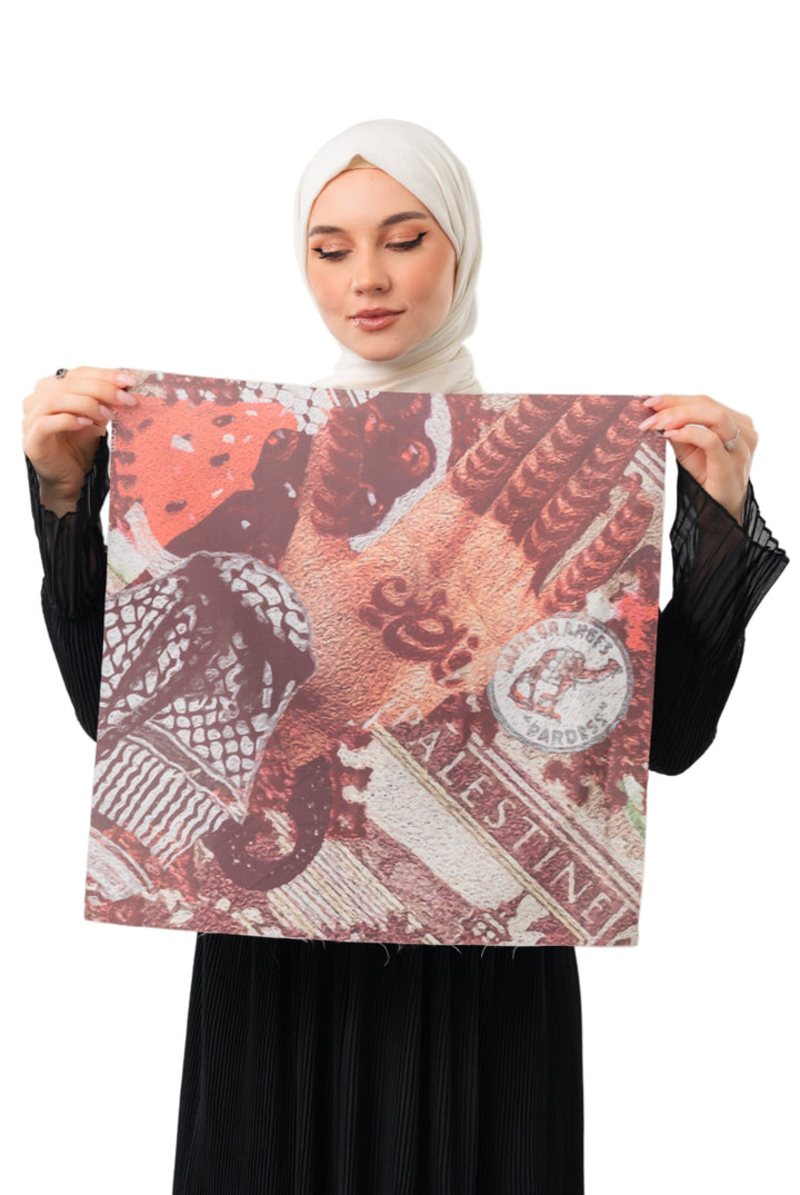 Palestine Old Image Aged Ellele Red Digital Printed Small Scarf 4545 Unisex S100052