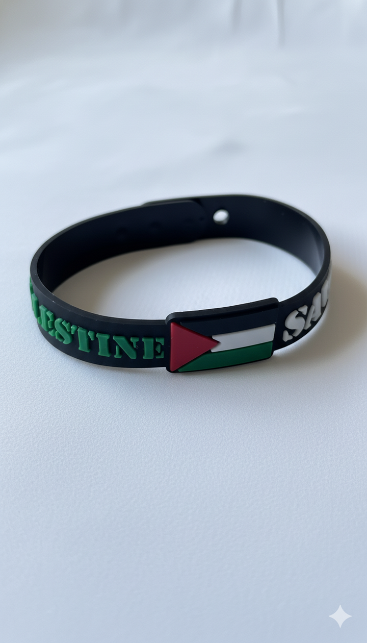 Palestinian Save Gazza Black Scented Rubber Adjustable Wrist Bracelet