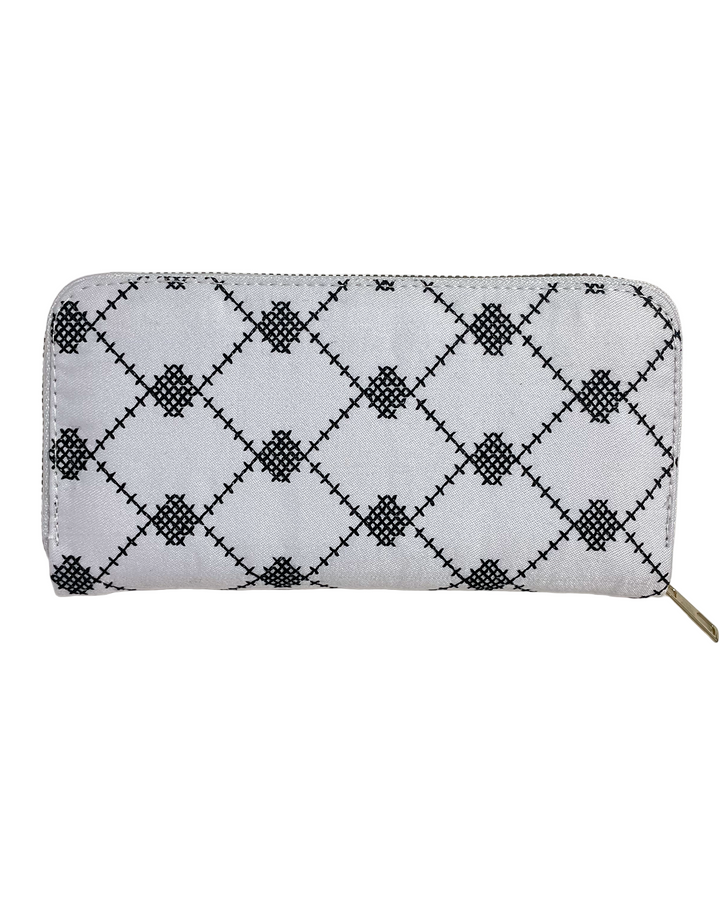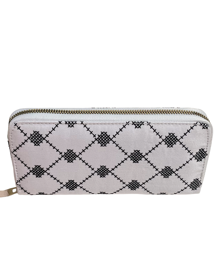 Palestinian Traditional White Keffiyeh Embroidered Single Zipper Womens Large Wallet 2010 Cm A100019