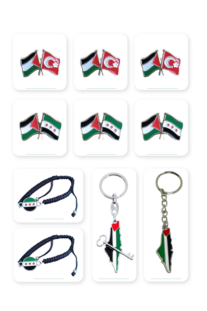 10 Pcs Syria And Palestine Accessory Set Lapel Pins + Keychains And Wrist Straps A300040