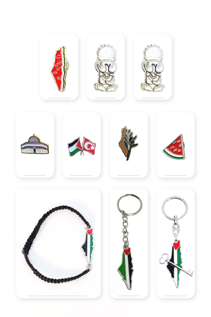 10 Pcs Palestine Accessory Set Lapel Pins + Keychains And Wristbands A300035