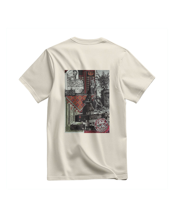 A Regular, Relaxed-Fit T-Shirt With A Large, Unique Print On The Chest. The Design Combines Traditional And Artistic Elements. Drawings From Palestinian Culture Are Combined With Geometric Patterns And Ornaments Inspired By Carpets And Traditional Buildings. The Print Is A Collage Artwork That Reflects The Rich And Diverse Heritage In A Modern And Appealing Way. Fabric: 100% Cotton