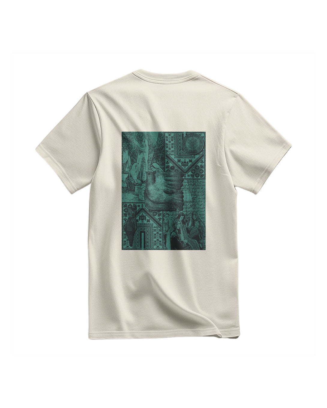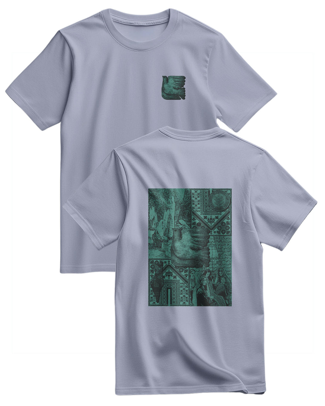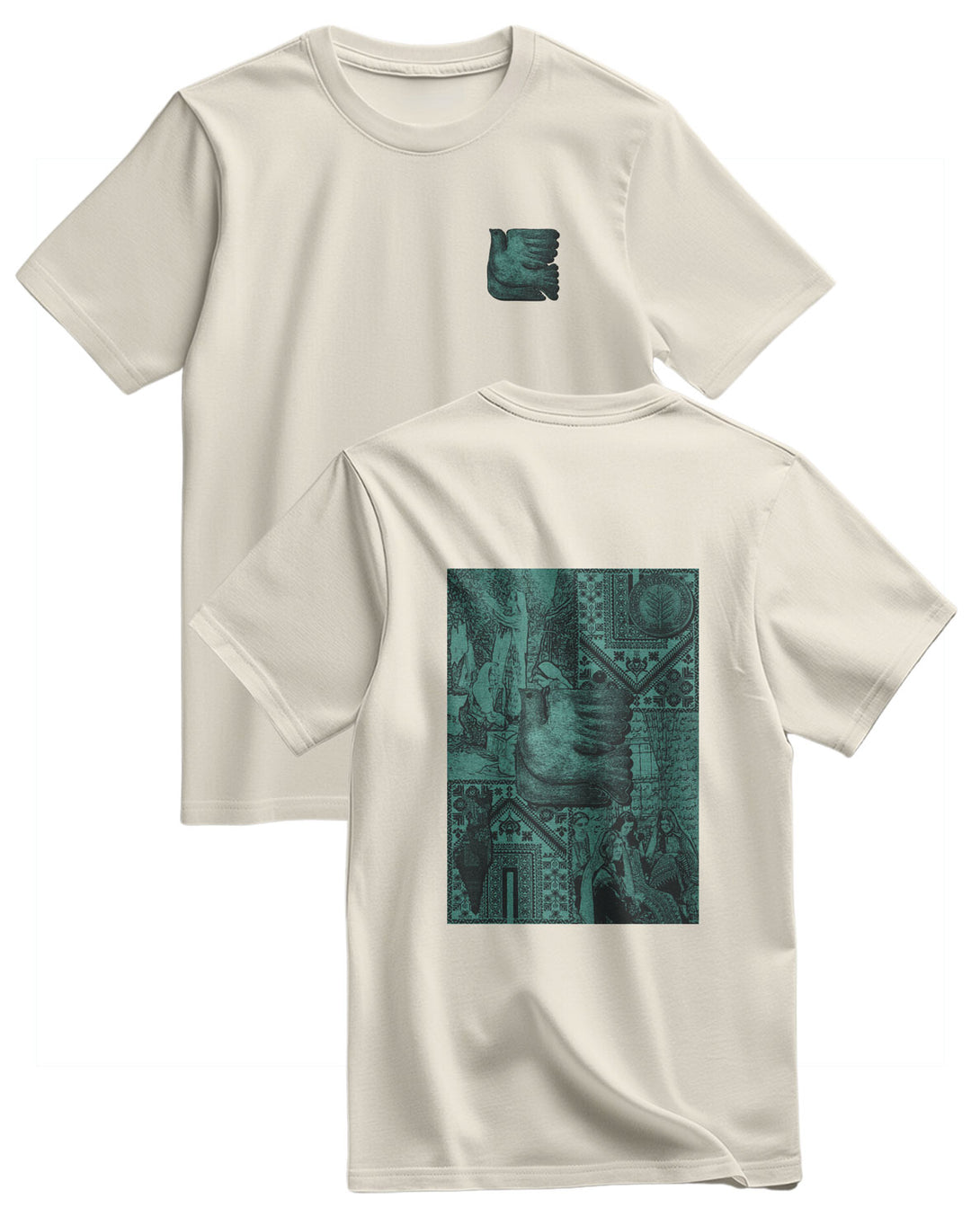 A 100% Cotton T-Shirt With A Regular, Relaxed Fit. It Features A Unique Design With Two Distinct Prints On The Front And Back. The Chest Features A Small, Simple Bird, Possibly A Dove, In An Ancient Sculptural Style. The Back Features A Large, Unique Artistic Collage Combining Geometric And Floral Ornaments With Drawings Inspired By Ancient Art And Mythological Figures. This Design Combines The Simplicity Of The Front With The Depth Of History And Art Behind It, Creating A Rich, Story-Filled Artistic Piece.