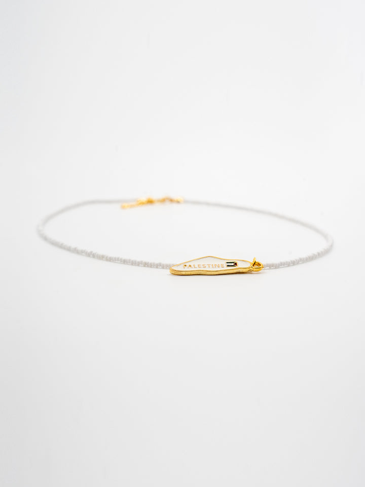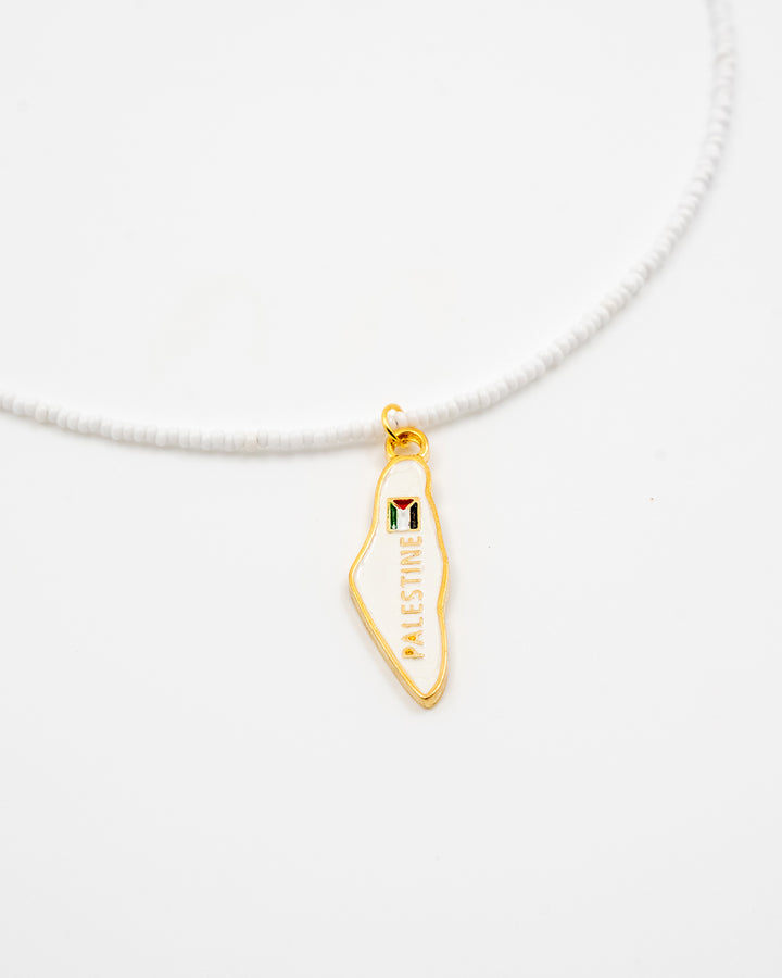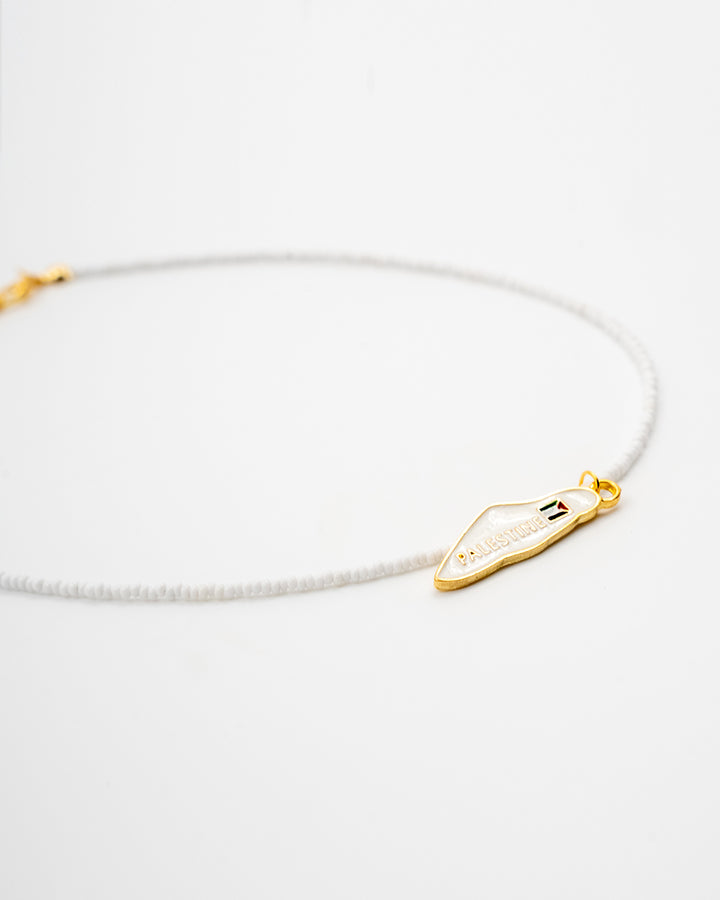 White Beaded Handmade Palestine Map Unisex Palestine Necklace 40 Cm J300011